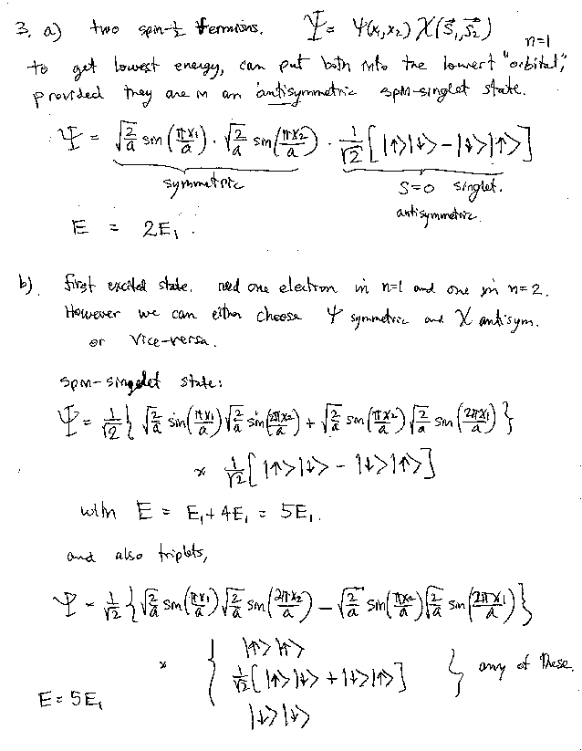 Exam 1 Solution - 1D and 3D Potentials and Identical Particles.