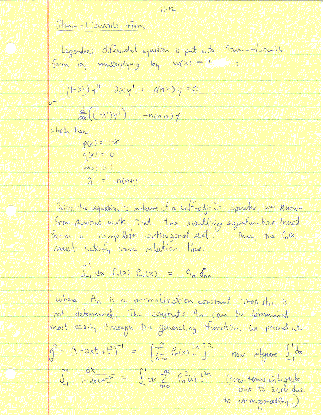 Sturm-Liuoville Form, Exapansion of Functions, Laplace Equation