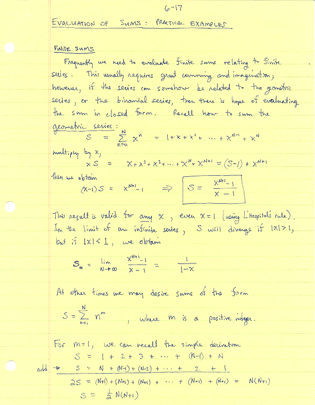 Evaluation of Finite and Infinite Sums, Partial Fractions, Integrations