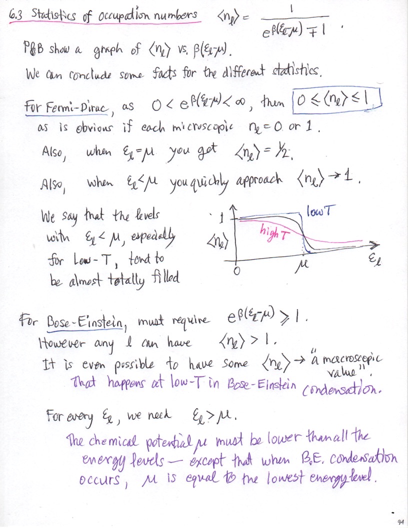 Statistics for ideal gases & occupation numbers.